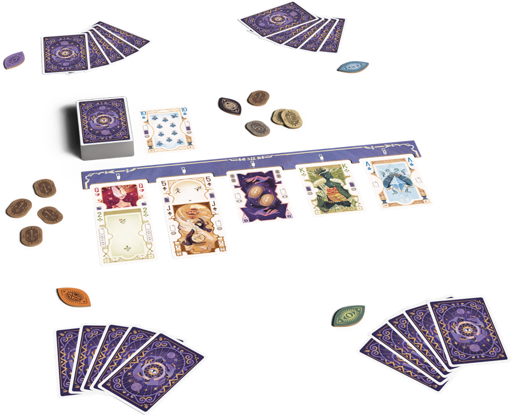Revisitant le poker à travers le prisme de la divination, ce jeu tactique vous permet de marquer des points en vous forgeant la main parfaite… et en prédisant qui y parviendra le mieux.