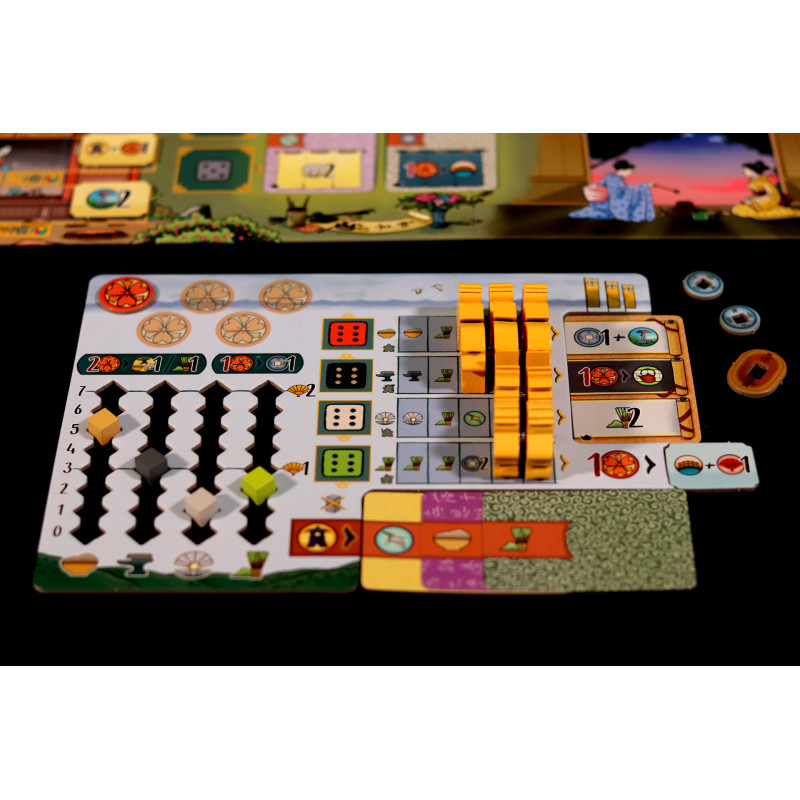 "Le Château Blanc : Matcha" est une extension qui ajoute une dimension stratégique au jeu de base "Le Château Blanc". Inspirée de la cérémonie du thé japonaise, cette extension apporte plateaux, nouveaux personnages et de nouveaux dés !