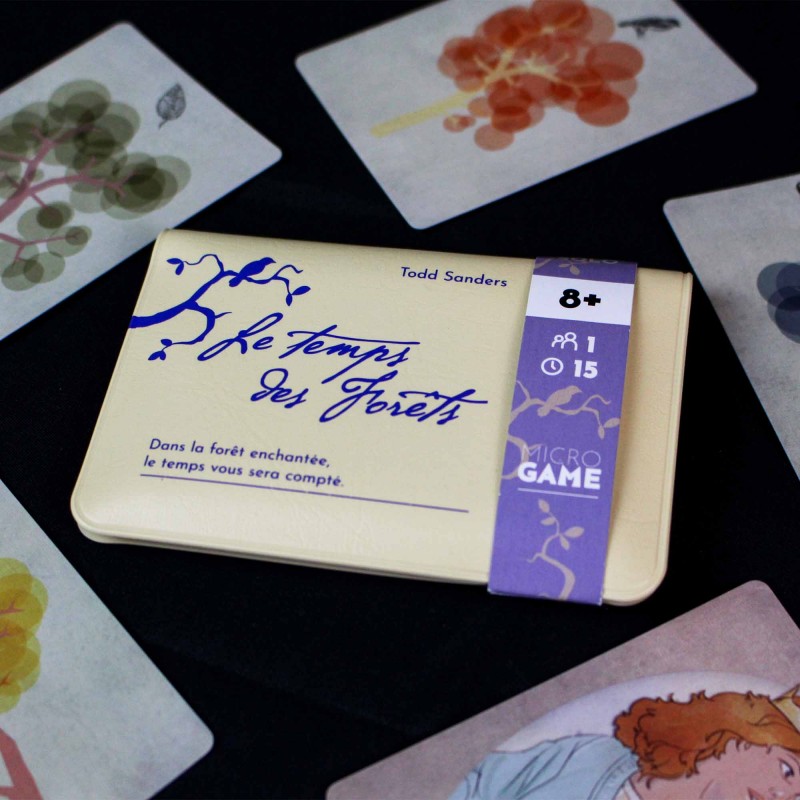 Le temps des Forêts est un jeu de solitaire de 18 cartes utilisant uniquement des cartes. Les règles sont contenues dans les 18 cartes. Le but du jeu est de faire pivoter, puis de retourner, chacune des douze cartes Arbre de leur face florissante à leur face dormante. Si vous y parvenez avant la fin des douze cycles d’horloge alternant jour et nuit, vous gagnez votre liberté.