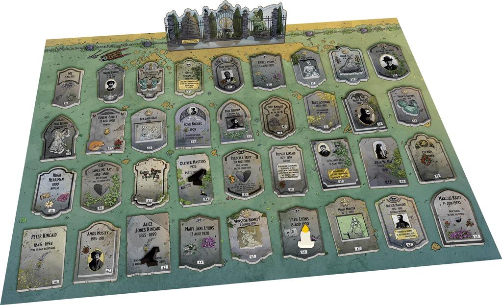 Warden Keene était le gardien du cimetière de Spoon River. Les morts qui y gisent ont connu un destin tumultueux ; passions et rancœurs perturbent encore leur repos éternel. Warden a consigné leurs secrets dans son journal, dont vous héritez aujourd’hui. A vous de mener l’enquête de tombe en tombe en décryptant les épitaphes avec logique. Vous exhumerez au grand jour les 11 mystères qui hantent ces lieux, à l’aide d’un seul outil : votre sens de l’observation. Faites dialoguer les tombes en révélant les histoires de leurs occupants. Pas de points, pas de scores, seul le plaisir de l'enquête. Lorsque vous êtes bloqués, une aide vous guide pas à pas, sans gâcher la surprise. Le matériel de jeu, somptueux, vous plonge dans l'atmosphère unique d'un cimetière du siècle dernier. Inspiré du recueil de poèmes Spoon River Anthology, ce jeu narratif coopératif est aussi fascinant qu'ingénieux.