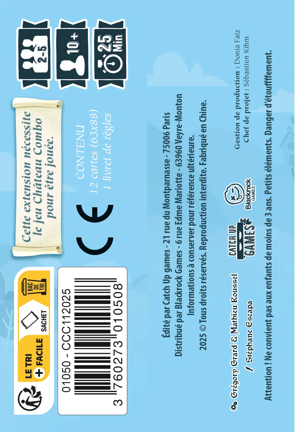 Château Combo : Au Cachot ! renouvelle le jeu de base en injectant 12 nouveaux personnages (6 pour le Château, 6 pour le Village). Outre de nouveaux scorings et nouvelles combinaisons possibles, cette extension apporte surtout une toute nouvelle mécanique : les effets Cadenas, à usage unique, peuvent être déclenchés au tour de votre choix. Sans complexifier un jeu qui brille par sa fluidité, les Cadenas apportent leur lot de nouvelles réflexions et opportunités de combos. Certains de ces effets vous permettront d'agir encore davantage sur les rivières de cartes, au-delà de l'action du Messager au début de votre tour. D'autres viendront même déclencher à nouveau l'effet d'une carte adjacente, au moment le plus opportun !
