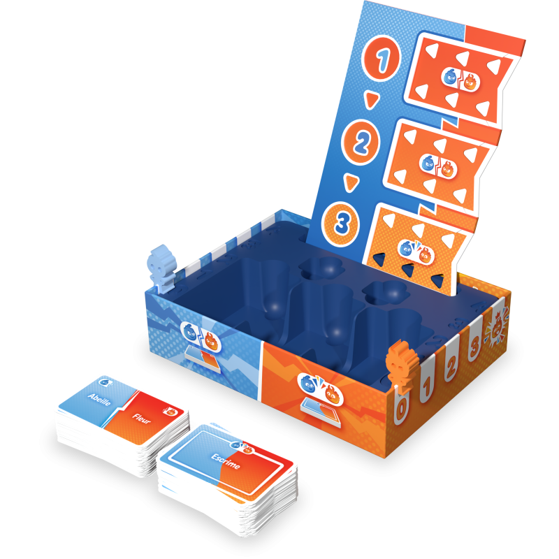 Observez l’équipe adverse pour deviner vos mots plus rapidement et prendre ainsi l’avantage ! Devinez votre mot final pour gagner la course. La première équipe à gagner 4 manches remporte la partie.